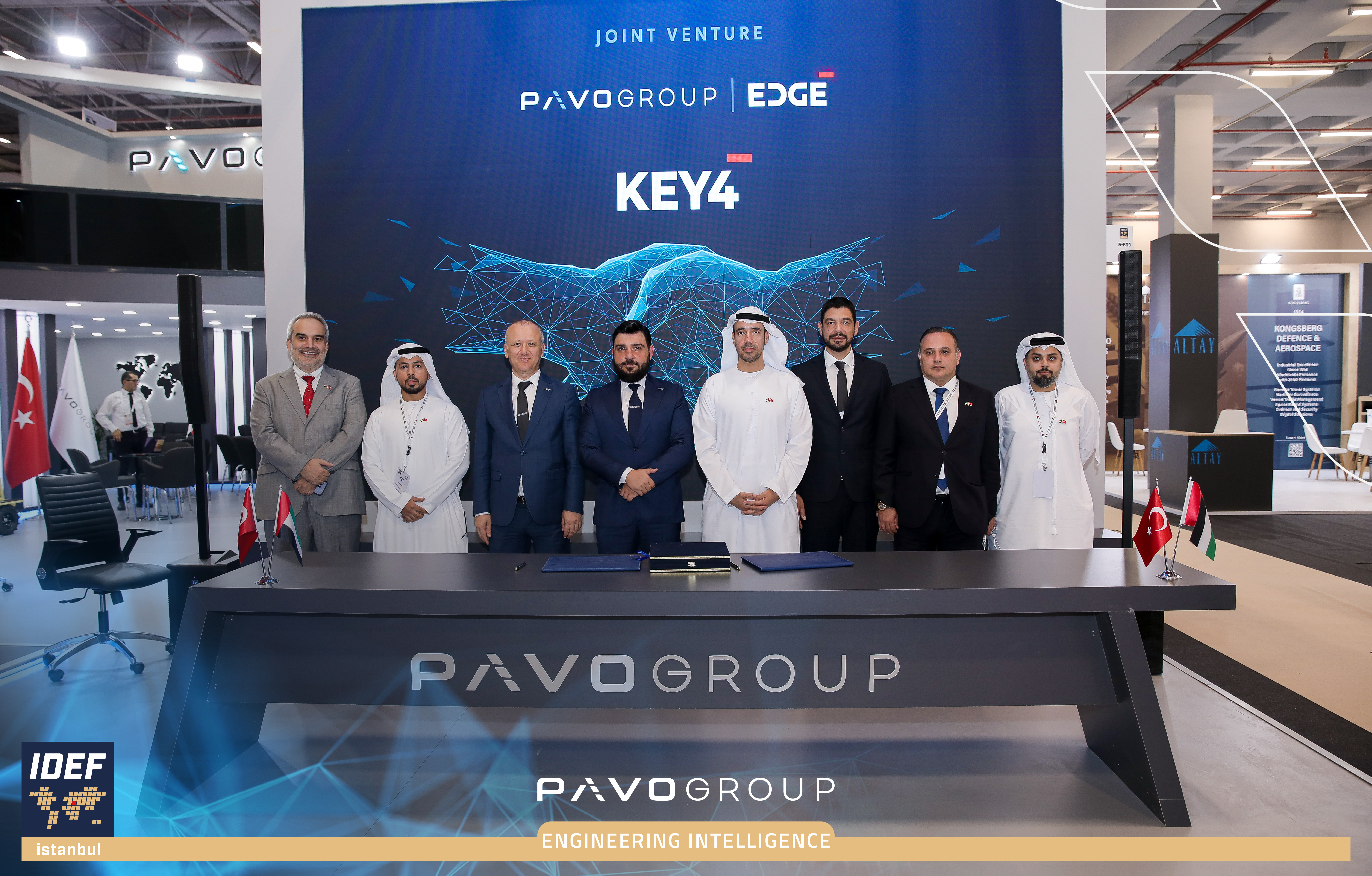 Pavo Group is pleased to announce a strategic Joint Venture with EDGE, one of the world’s leading advanced technology and defence groups. This partnership announces the formation of KEY4 LLC Abu Dhabi , a groundbreaking strategic joint venture. Unveiled at IDEF International Defence Industry Fair 2025, KEY4 is poised to become a major technology hub in the region, leveraging the two groups' leading technologies in parallel with advances in critical defense and security technologies.